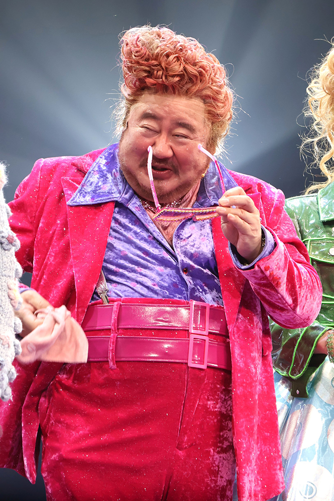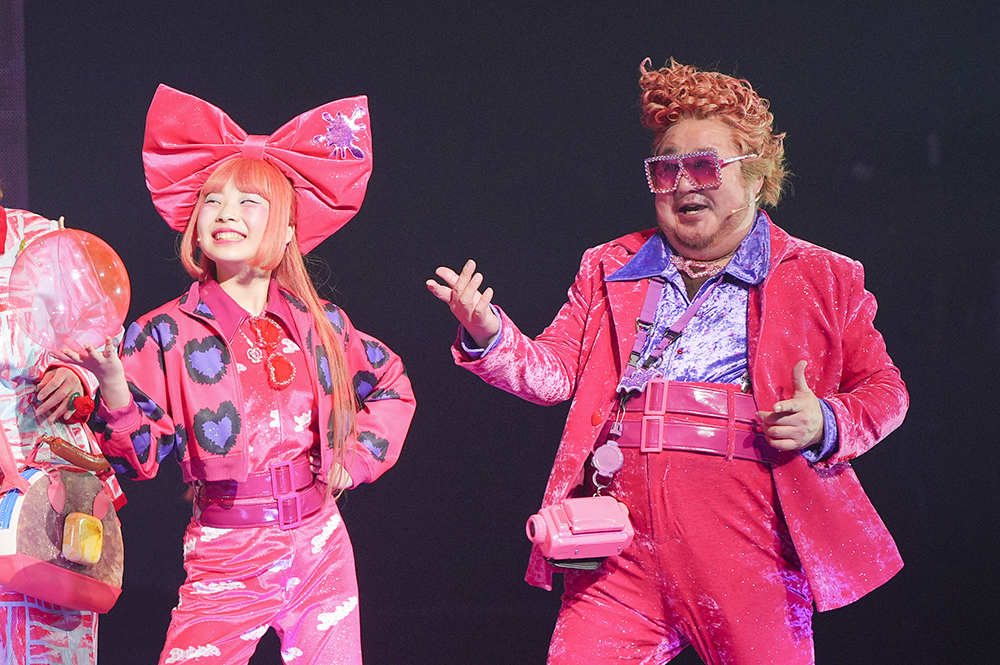 何でも1番でないと気が済まない娘バイオレットの父親、ボーレガード氏の芋洗坂係長は、娘を本気でナンバーワンだと思っているステージパパぶりが、全く鼻につかず可笑しみに変換されるのが芋洗坂ならでは。ダンスシーンも鮮やかにキメる貴重な人だ。その娘バイオレットは木村律花と吉田璃杏のWキャスト。ゲネプロ出演の吉田は、再演からバイオレット役は大人が演じることになったのかな?と一瞬迷ったほど大人びていて、自身を世界のアイコンだと信じるティーンエイジャーにピッタリ。コケティッシュな魅力もある木村の役づくりも楽しみだ。